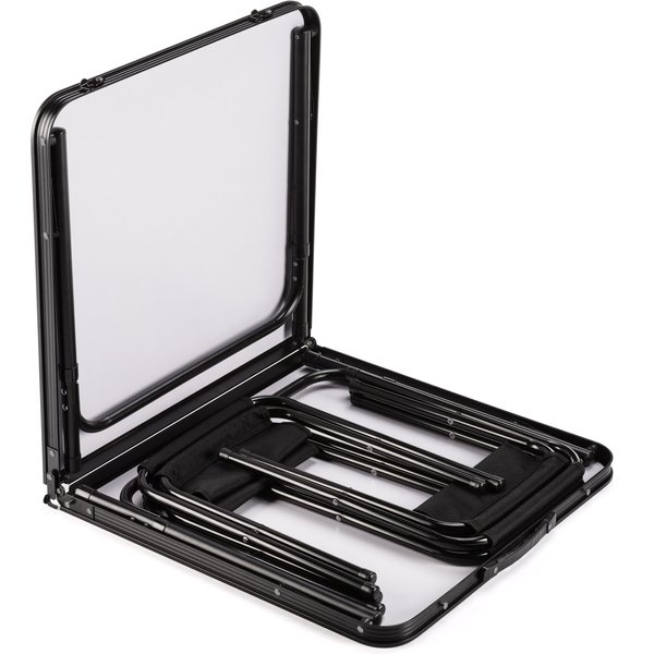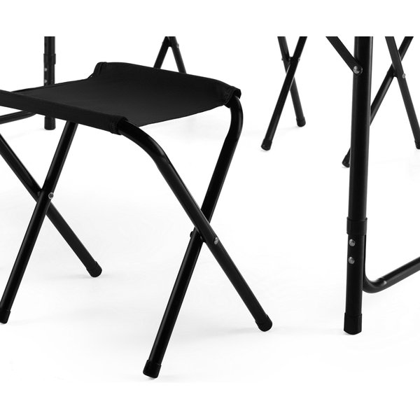 - Kompaktowa, składana konstrukcja z krzesłami: Cały zestaw składa się w jedną poręczną formę, co ułatwia transport, przechowywanie i szybkie rozstawienie.